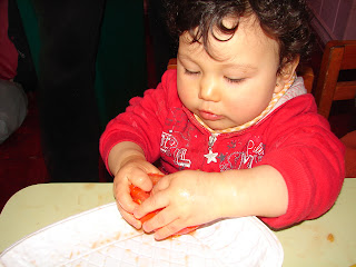 Hace unos días publicamos como aprender matemáticas con elementos naturales que hay en todas partes como las Naranjas , hoy comparto con ustedes otro de nuestros talleres de cocina , pero esta ves lo hicimos con el grupo hetereogeno menor de 1 año a 2 años 6 meses, como estamos conociendo aspectos de nuestra cultura por encontrarnos en el Mes de Patria hicimos PEBRE, que no falta en ninguna mesa Chilena al momento de hacer algún almuerzo, asado, etc. Usamos Tomates frescos, cilandro, limón , sal y algunos aliños, nos falto el ají y la cebolla que no lo incluimos porque son sabores muy fuertes para los niños ,pero la experiencia fue muy maravillosa